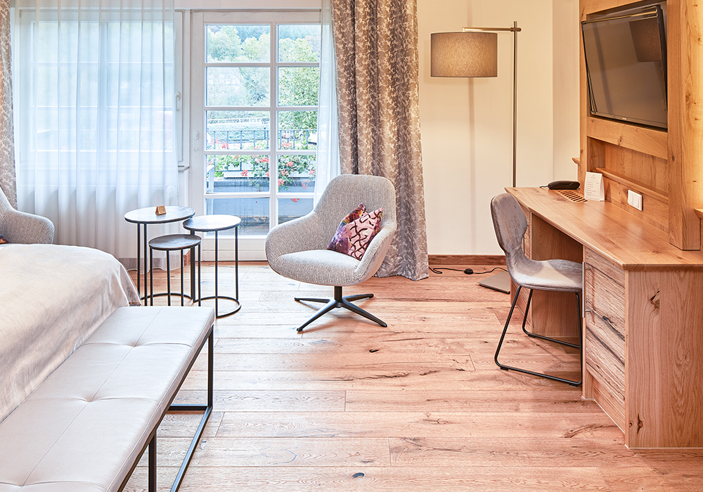 Es erwartet Sie ein höchstmaß an Behaglichkeit gepaart mit einer großzügigen und modernen Einrichtung. Dieses Zimmer bietet Ihnen einen wunderbaren Rückzugsort und wird Sie mit seinem Charme verzaubern.